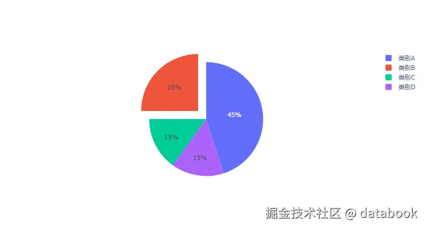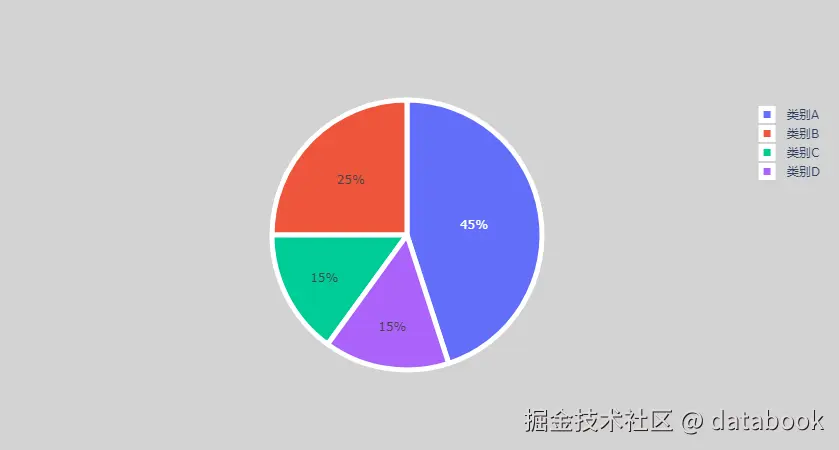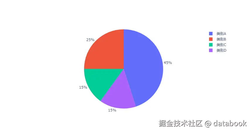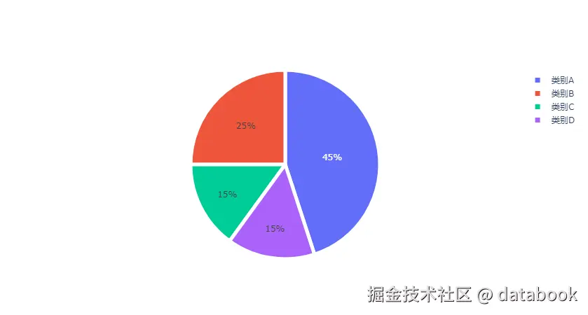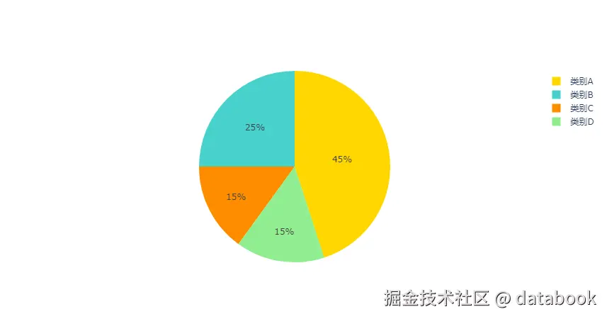 通过 go.Pie() 函数,将准备好的数据传递进去,创建了一个基本的饼图对象。