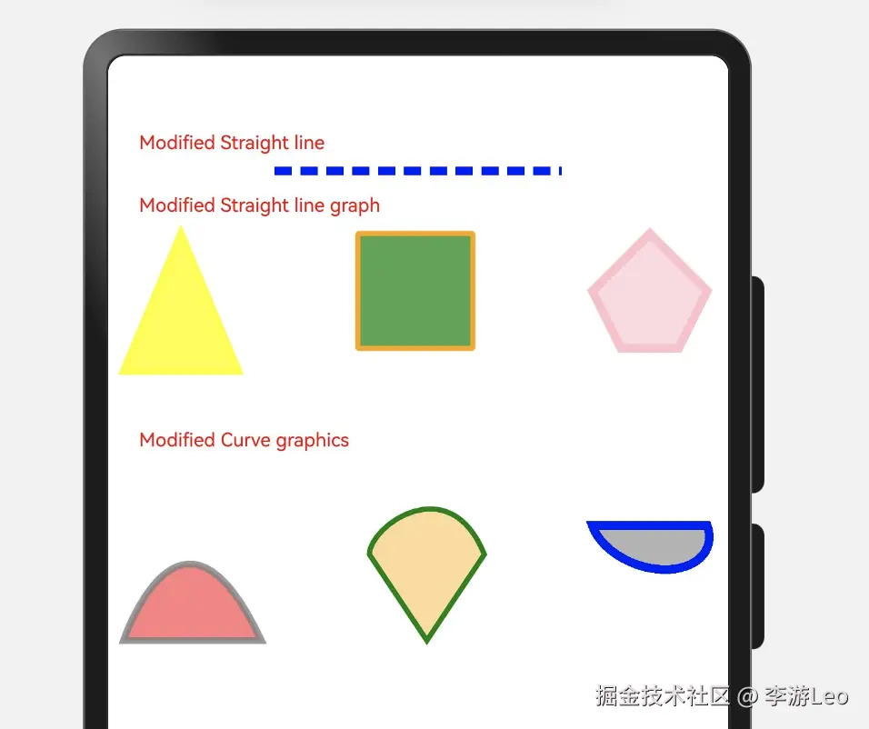 Text('Modified Curve graphics').fontSize(11).fontColor(0xFF0000).width('90%')
