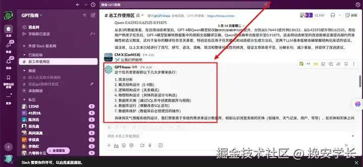 大佬通过OpenAI官网的API在Slack配置的一个应用。 加入他的Slack工作区就能直接使用GPT-4o、Gemini模型。而且工作区里面还有Claude3.7系列模型可以使用。目前Slack可以在电脑、手机、网页使用,可以说是很方便了。