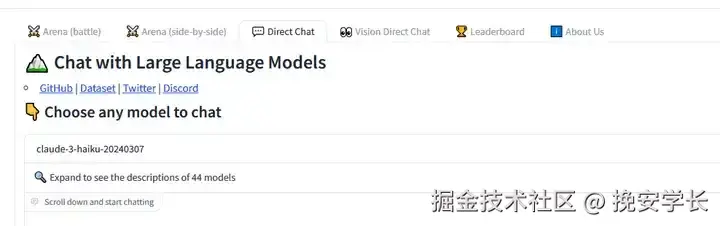 进入竞技场后点击DIRCTChat,然后选择4o模型就好。