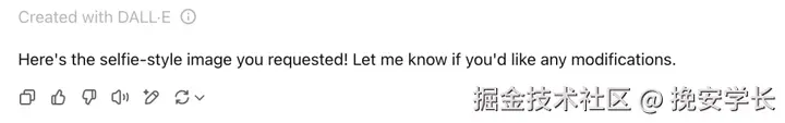 对于免费用户,用DALL.E模型生成的图片视角会比较远角,自拍人的手臂处理的还有待提高,人物的一致性比较差,白板在这个视角下倒是可以清晰显示出来了。