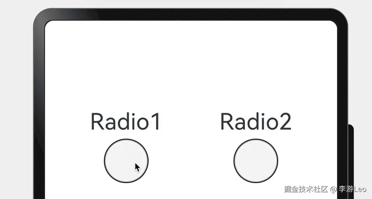 @State 装饰器定义了 value 和 value2 两个状态变量,分别用于控制两个 Radio 组件的选中状态。点击 Radio 组件时,会切换相应的状态变量的值。