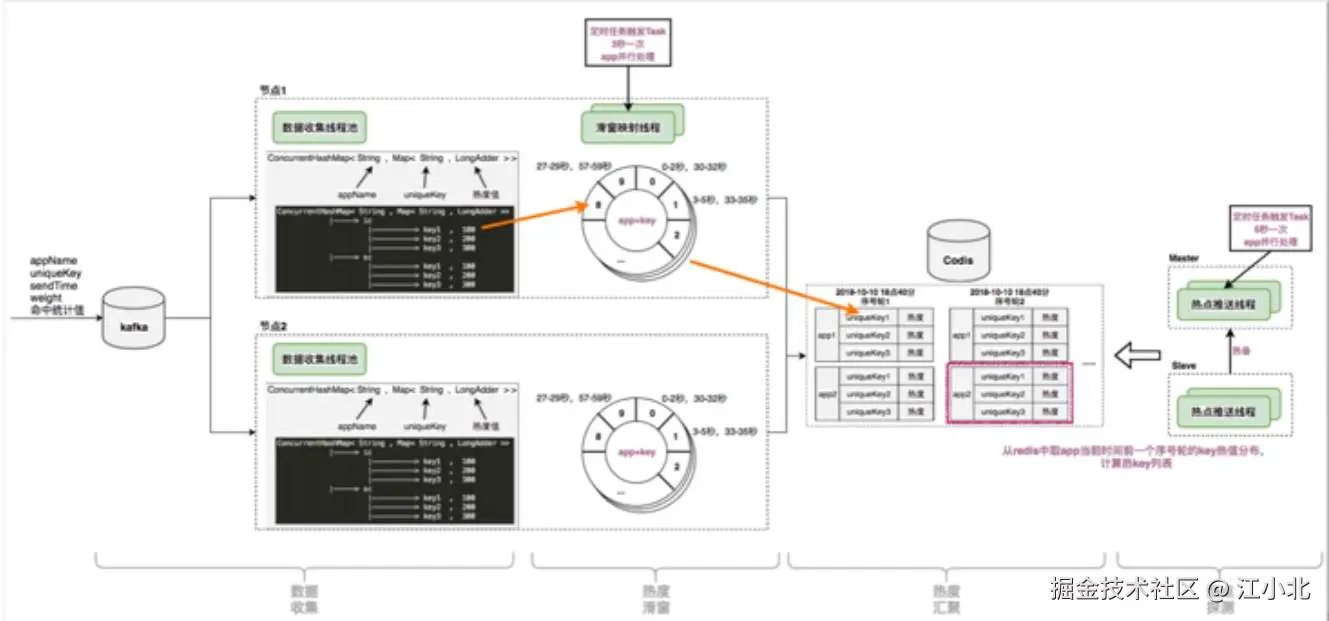 - 热点探测:从热度汇总结果中选出 TopN 的热点 Key,并推送给 Hermes-SDK。