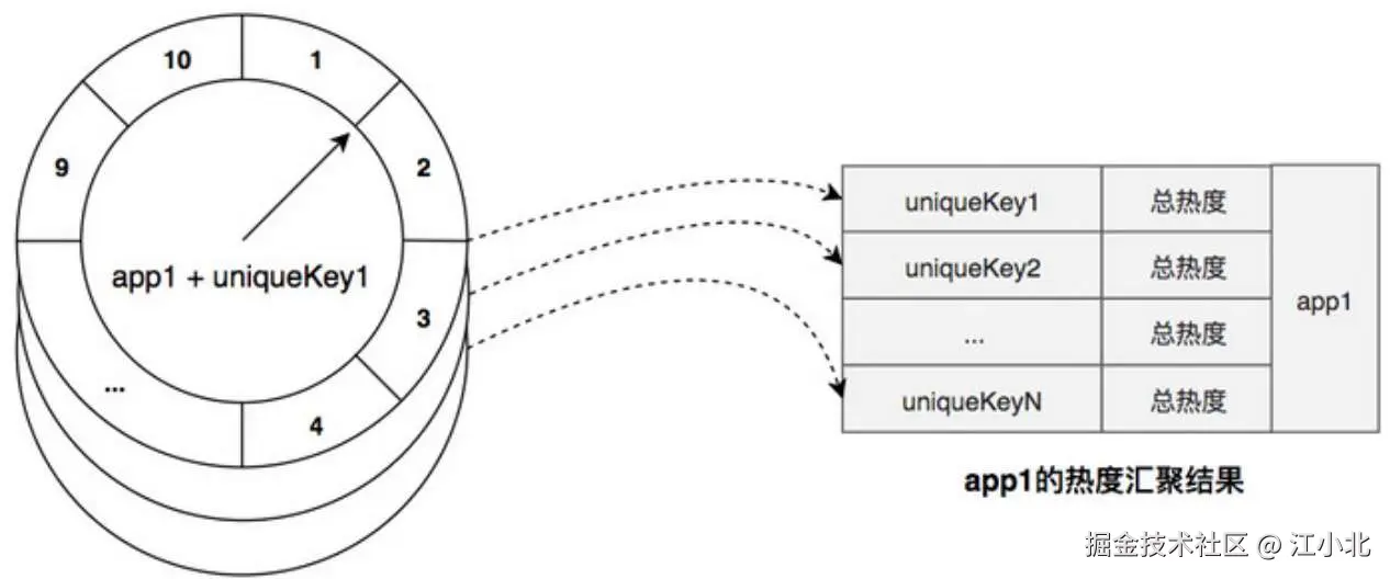 Key 的热度汇聚结果通过“基于时间轮实现的滑动窗口”准确反映了当前及最近的访问分布。