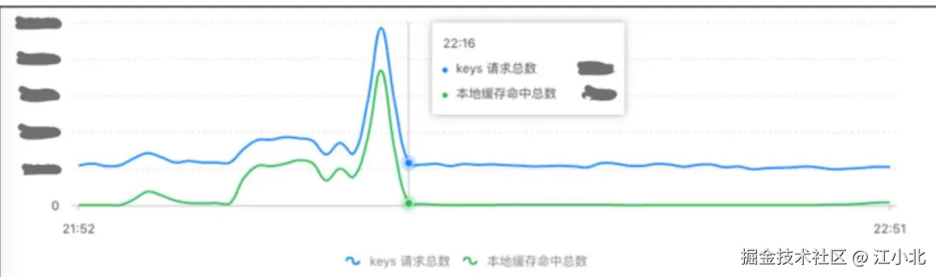 上图绿线表示获取缓存操作命中的次数,反映了 TMC 本地缓存命中的情况。