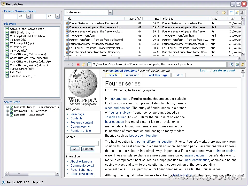 DocFetcher是款开源、跨平台(Windows、Linux、MacOS)的全文搜索工具,它通过创建索引快速查找本地文档中的特定文本,支持PDF、Word、Excel、HTML等多种格式,适合学生、研究人员及文档管理者。