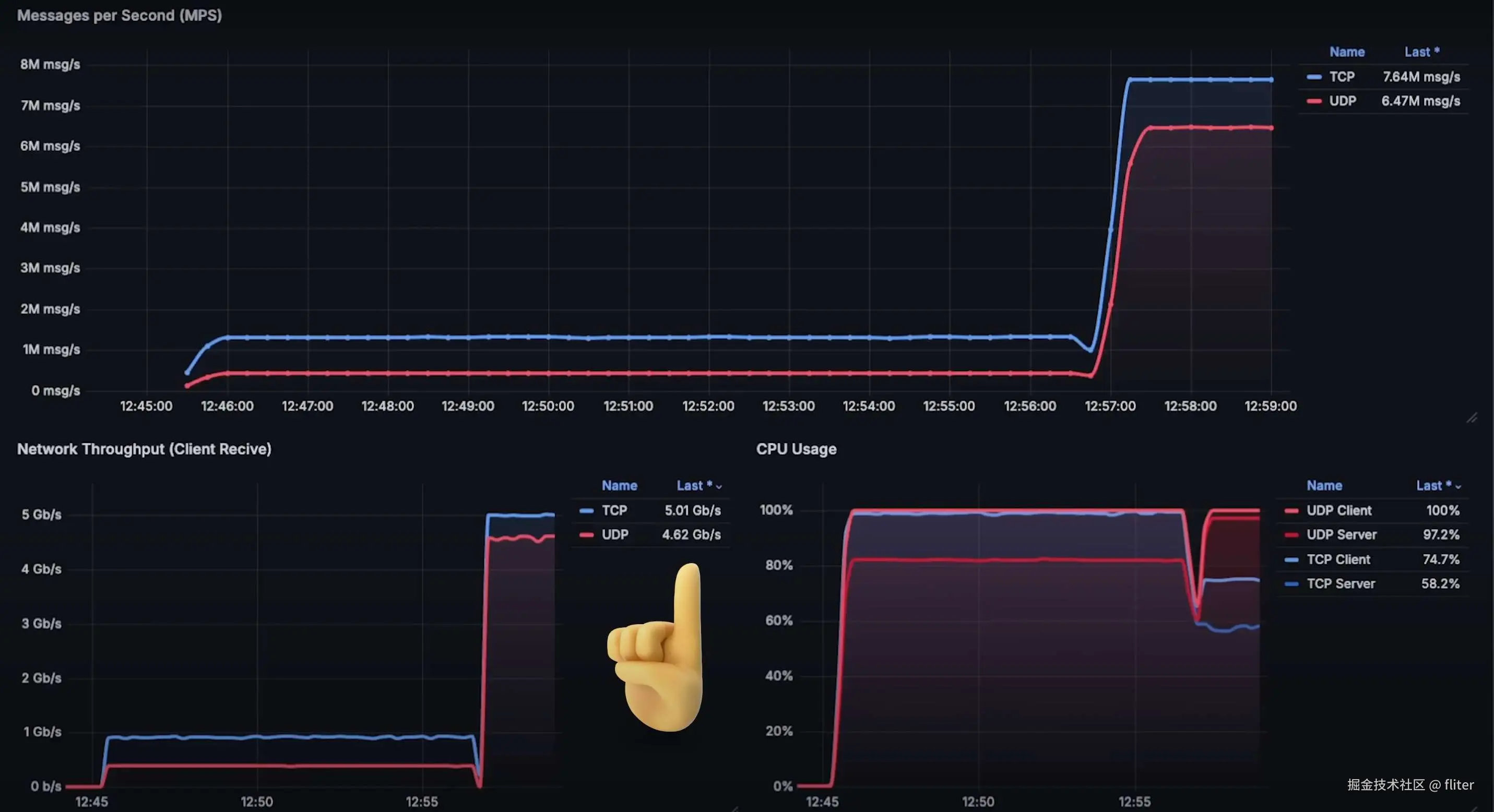 接着我重启测试,运行优化后的 TCP 和 UDP 实现。