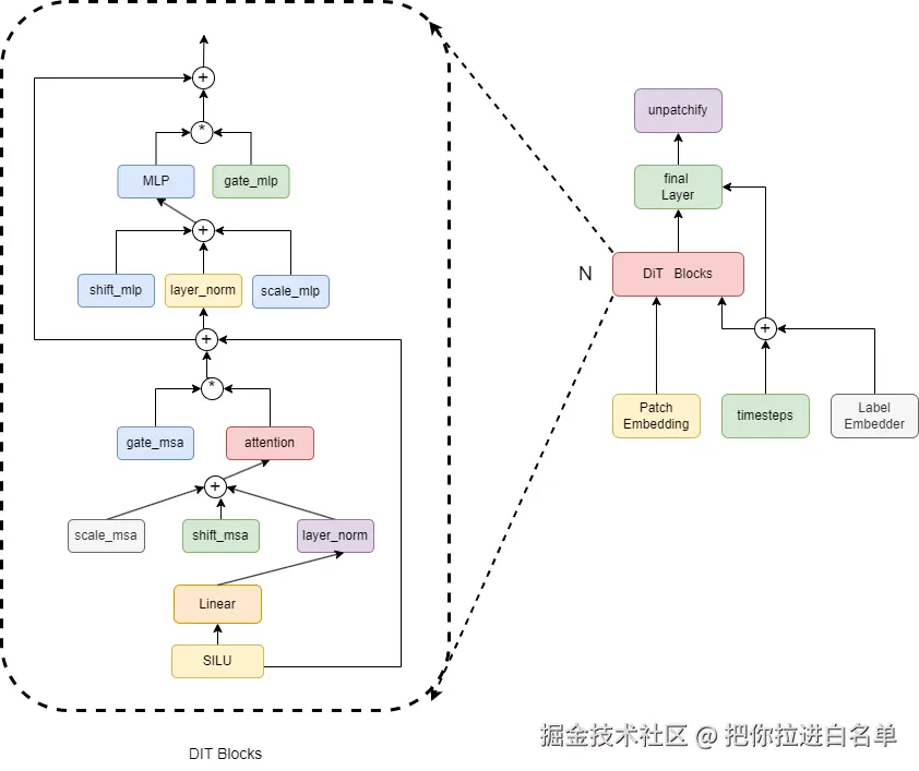 # 过adaLN_module之后, chunk成6份。每一份都是(N, T, D)大小