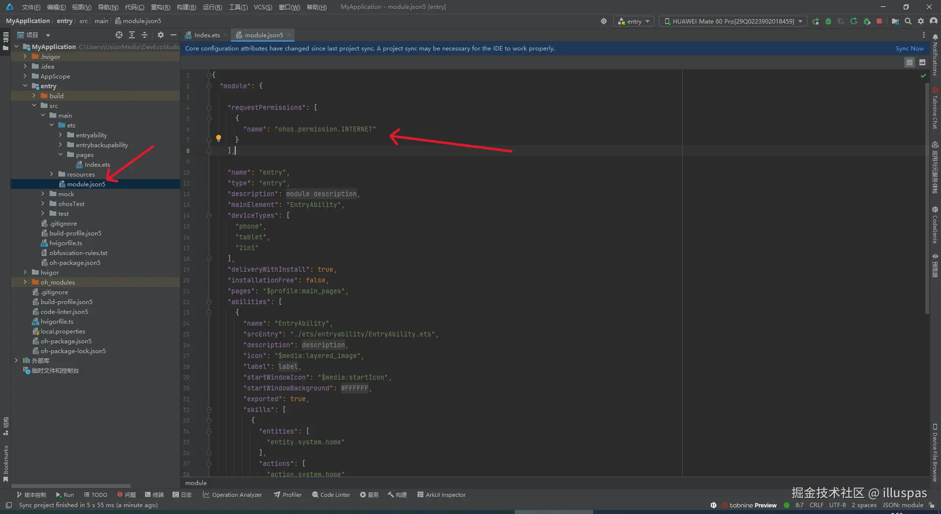 必须打开网络权限,在module.json5中加入以下代码