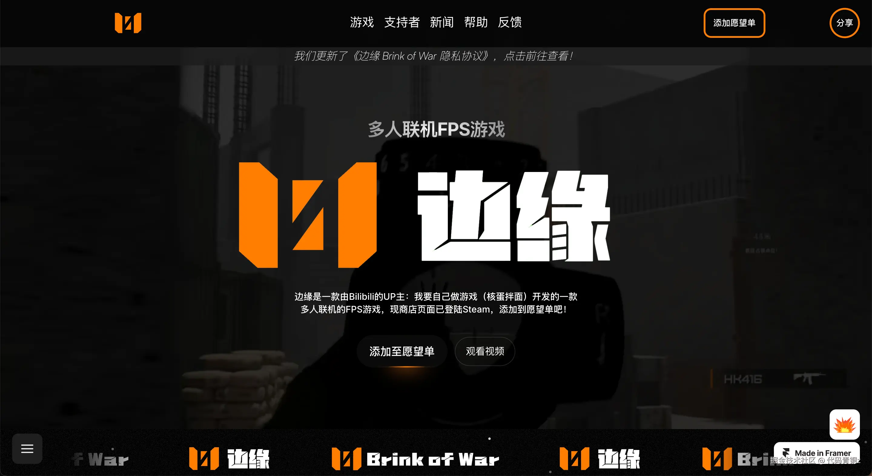 那时候的Zion还是初期版本,BUG多,不够完善。他对比了Zion和Framer,发现Framer虽然只是前端搭建工具,但胜在成熟稳定。于是,他用Framer搭建了游戏官网,至今仍在使用。