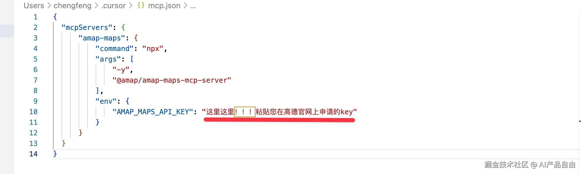 "AMAP_MAPS_API_KEY": "这里这里!!!粘贴您在高德官网上申请的key"