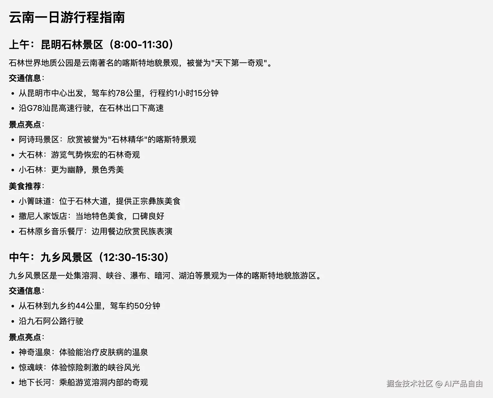 他把天气、游玩地点+吃饭地点+交通方式,全都找出来了!