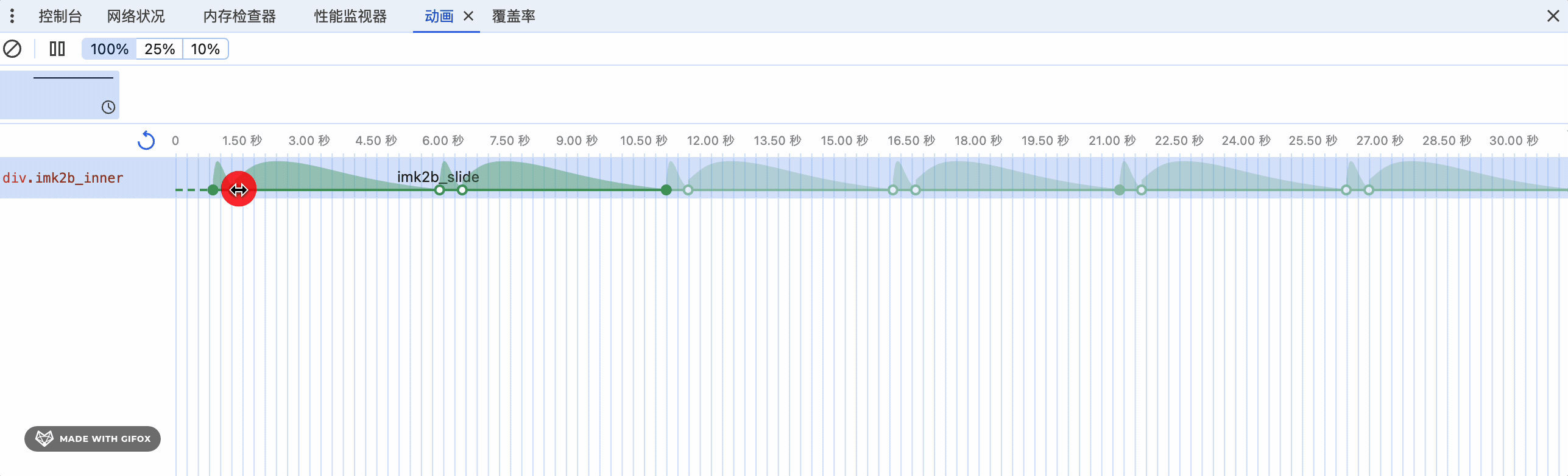他可以把页面中所有动画进行回放和调试,并且进行慢放动作,在做一些动画调试的时候比较有用