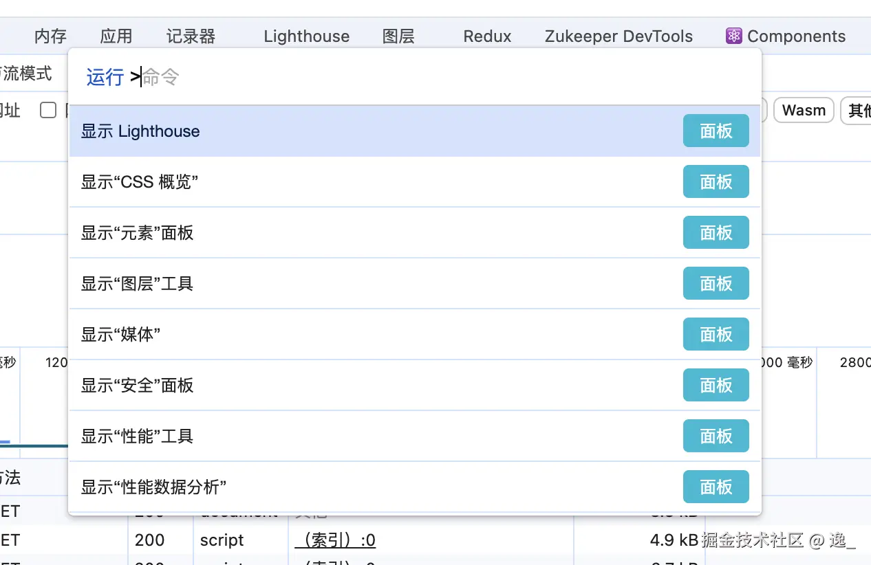 “命令”菜单是最最常用的,本文也会多次用到,所以这里先说一下打开方式,打开 devtool , Cmd + Shift + P