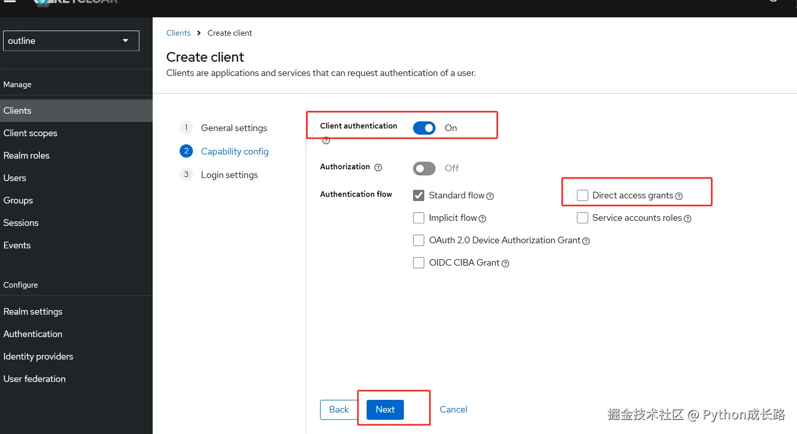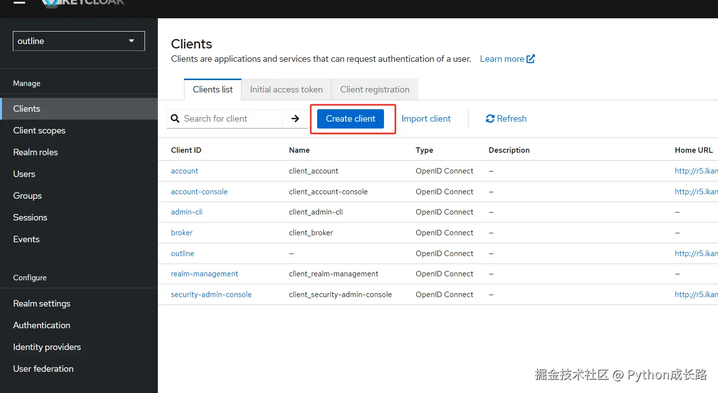 接着再outline下创建Clients
