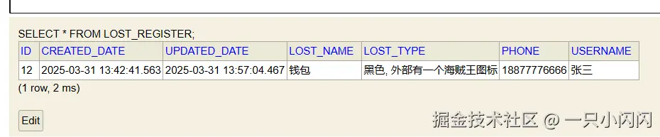 可以先根据用户手机号查询用户已经登记的丢失信息,但是有一个问题,用户只能在系统中登记一条信息,如果有多条的话,多条数据都会更新,这个方案不是很好。