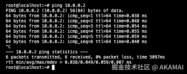 输出结果应显示,该实例与专用网络内部的数据库之间可以成功地收发ICMP数据包。