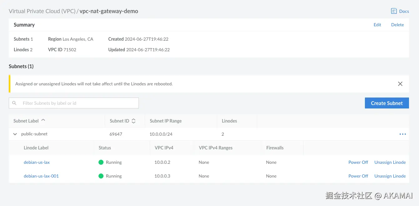 在Linode平台的VPC中构建NAT网关,可获得一种安全高效的方式来管理公共资源和专用资源之间的网络流量。这可以保证我们的专用实例能够访问必要的外部资源,同时保护它们不直接暴露在互联网上,最终提高云计算基础设施的安全性、可扩展性和效率。