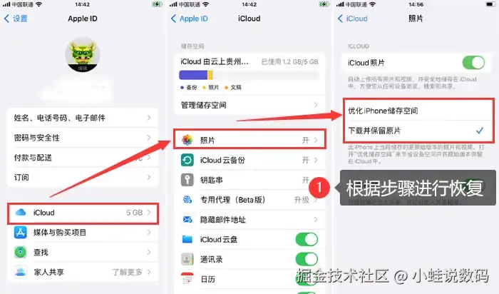首先,恢复照片的前提是确保您的照片已经成功备份到了iCloud。您可以按照以下步骤进行检查: