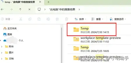 除了以上分享的相机SD卡数据恢复方法,如果里面的照片有通过社交软件进行上传或传输,很可能这部分照片会被电脑自动进行备份,装进了临时文件夹中。相机内存卡删掉的照片如何恢复?我们选择直接在硬盘搜索出临时文件夹(搜出名为【temp】的文件夹即可),在里面尝试搜索丢失照片的备份。