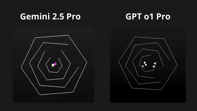 不得不说,Gemini 2.5 Pro 与 GPT o1 Pro 表现得都很棒,o1 Pro 的小球还有一些动效。