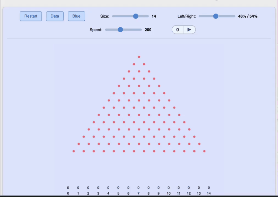 轻松制作一个高尔顿板模拟器,更直观地理解概率、统计、正态分布、大数法则、二项分布等抽象数学概念。