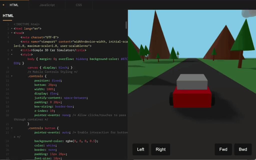 比如,使用 Three.js 创建一个 3D 汽车模拟器。