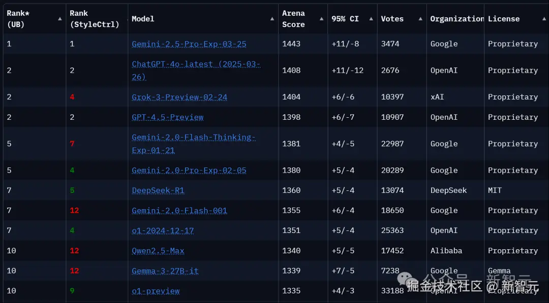 刚刚发布几天,Gemini 2.5 Pro 已经冲上了 Chatbot 竞技场榜首的位置,超越了最新更新的 ChatGPT-4o-latest 以及 Grok-3。