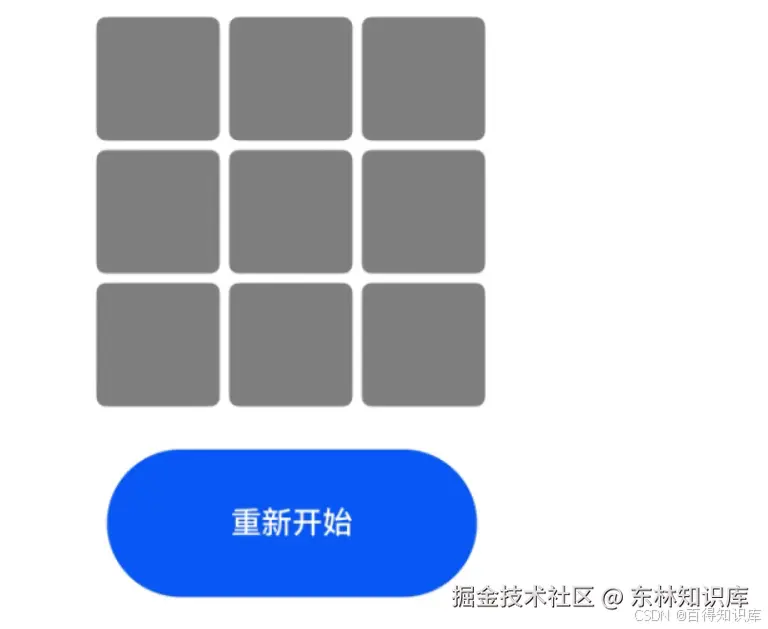 使用鸿蒙NEXT的布局组件构建游戏界面,展示游戏板和重新开始按钮。