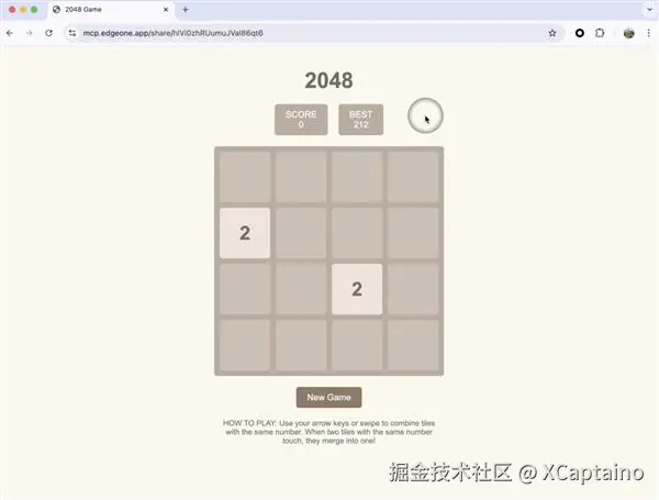 一句话生成的 2048 小游戏