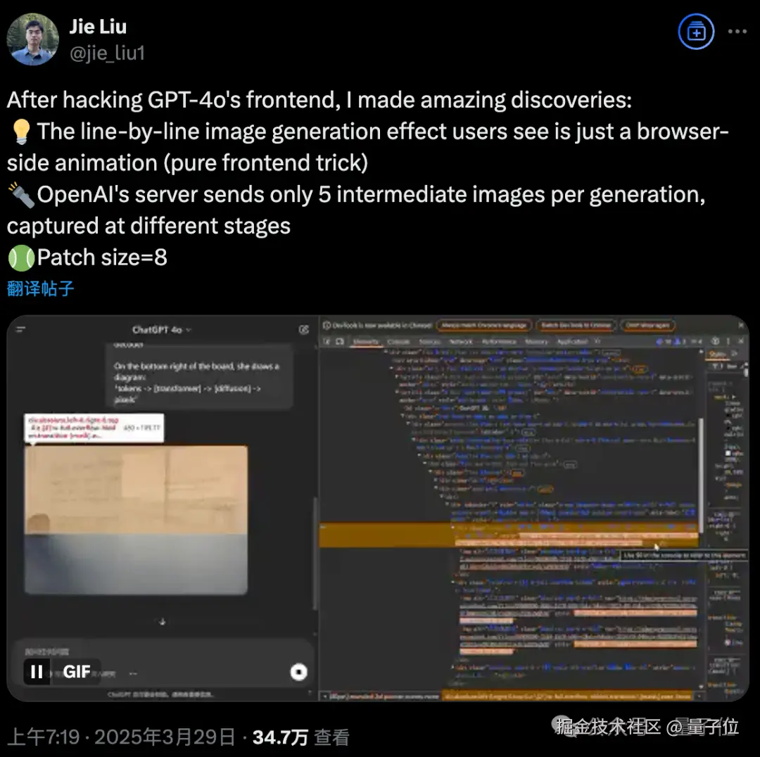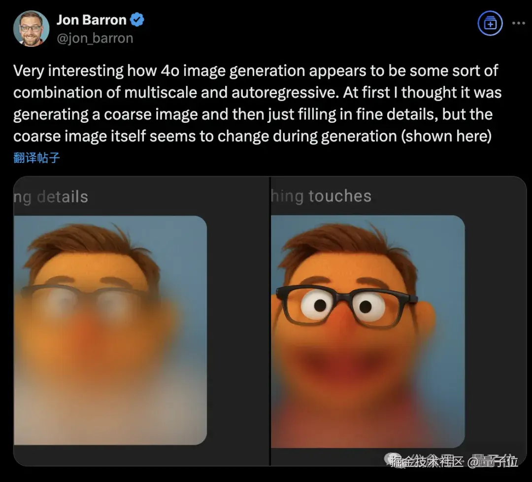 由于 OpenAI 未公布 GPT-4o 图像生成的技术细节,此前确实有人依据这个生成过程动画,猜测底层架构可能是多尺度自回归的组合。