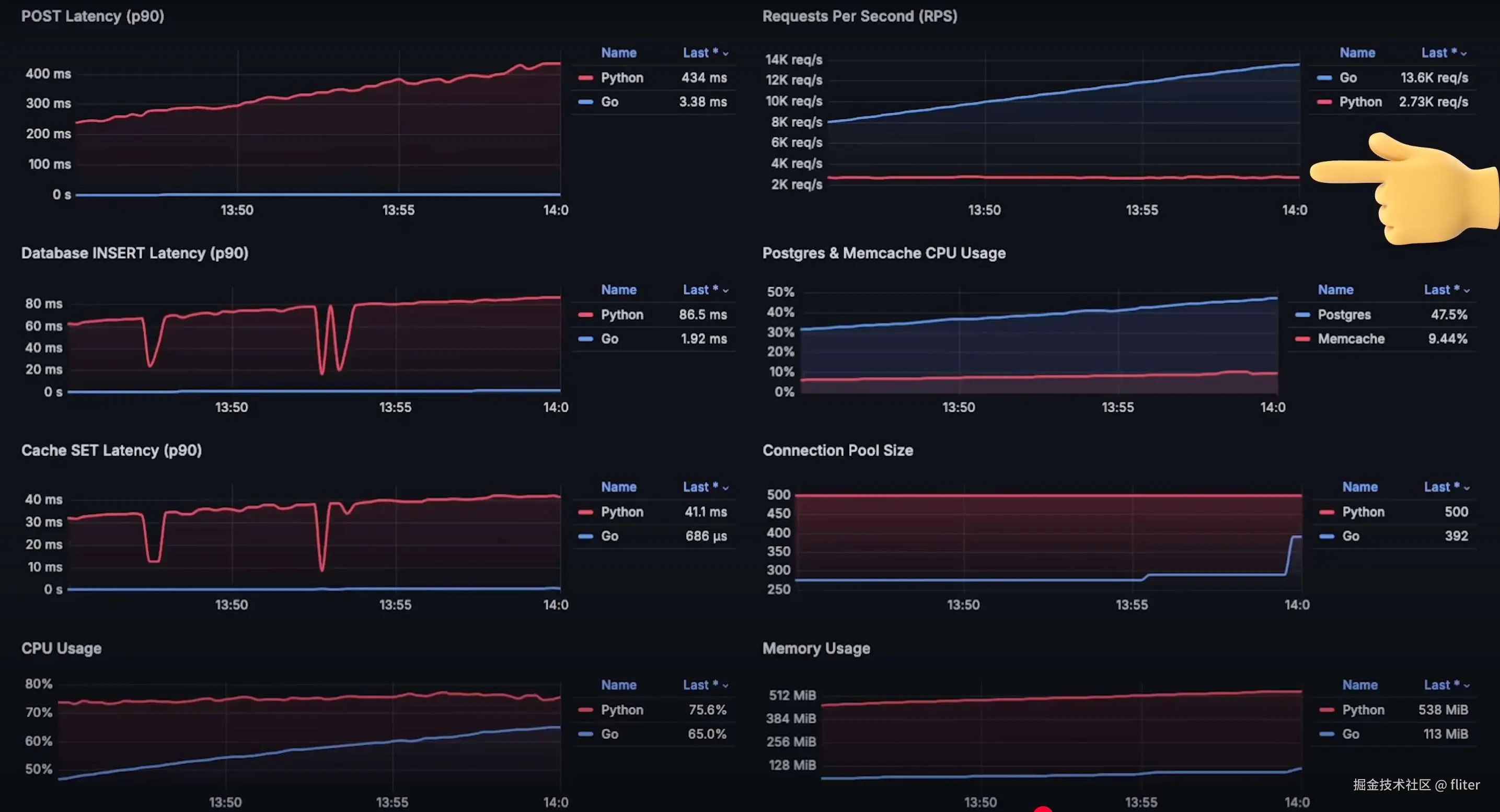 如果你想改进你的 Python 应用程序,我建议对比两种实现,并查看仪表板上的性能差异。