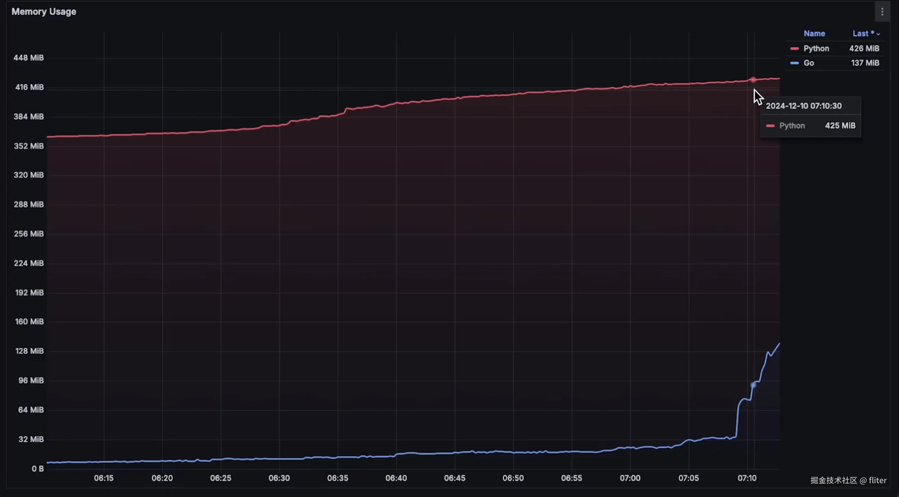 - Go 在崩溃前,内存使用量会激增。