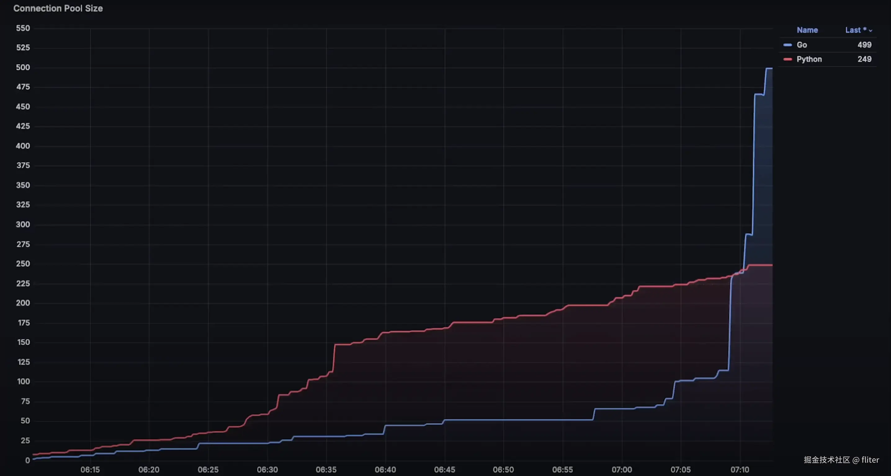 - FastAPI 在 10-15 分钟内达到极限,而 Go 需要运行 1 小时才能达到极限。
