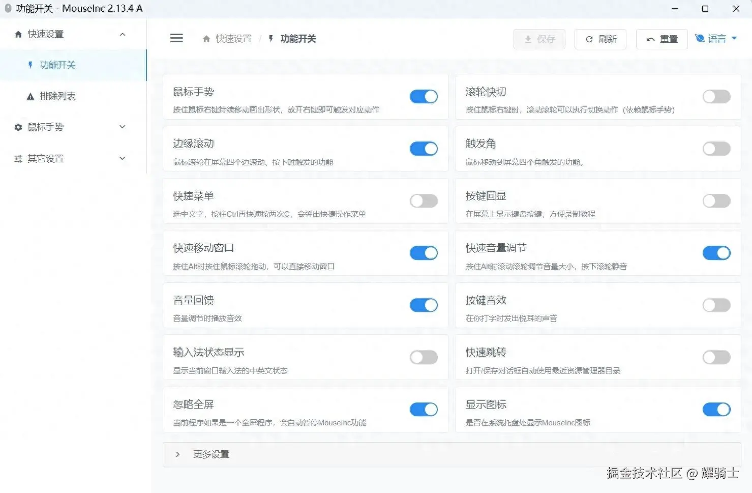 MouseInc 是一款功能强大的鼠标自定义工具,专注于通过手势操作提升效率。用户可通过滑动、点击等动作触发自定义命令,例如切换窗口、调节音量或启动程序。其核心优势在于高度灵活的配置选项,支持修改按键映射、滚轮速度及手势轨迹灵敏度,并提供“穿透透明窗口”等实用功能。软件体积仅数MB,资源占用极低,且无需安装即可使用。
