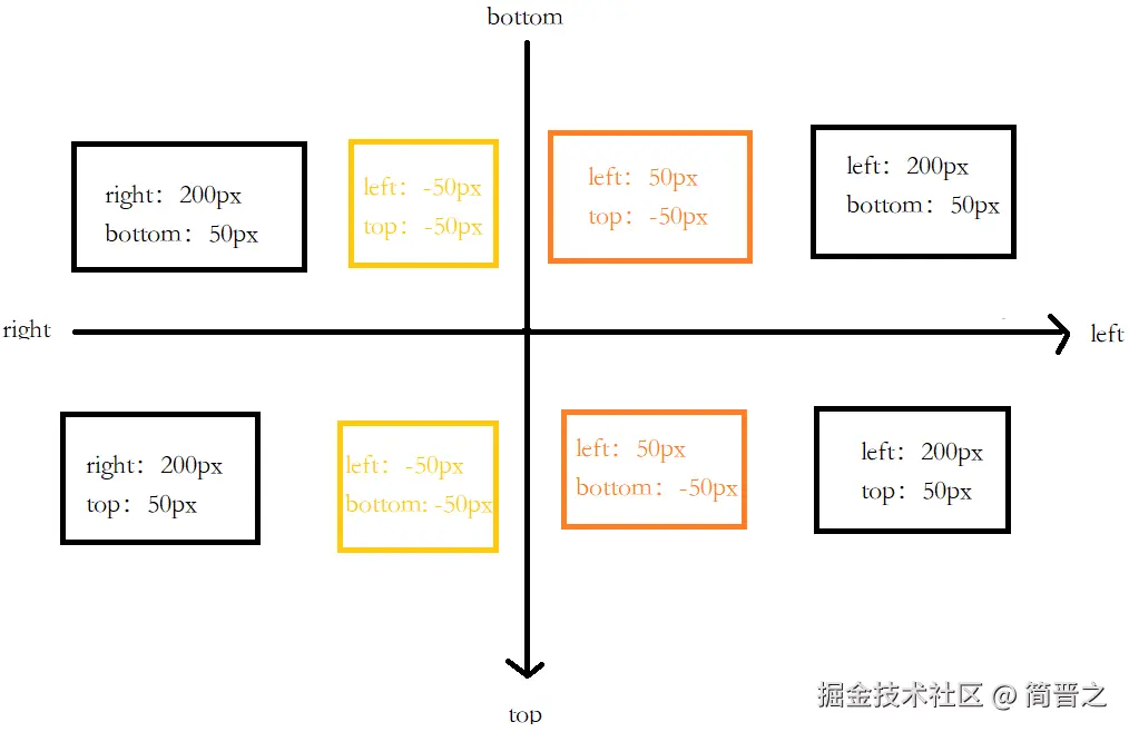 top、bottom、left以及right