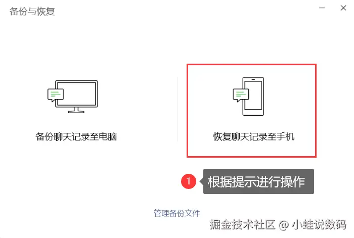 操作步骤:登录电脑端微信,并确保已连接好网络。点击微信右下角的 【更多】>【备份与恢复】 。选择 【恢复聊天记录至手机】 ,根据提示完成恢复过程。