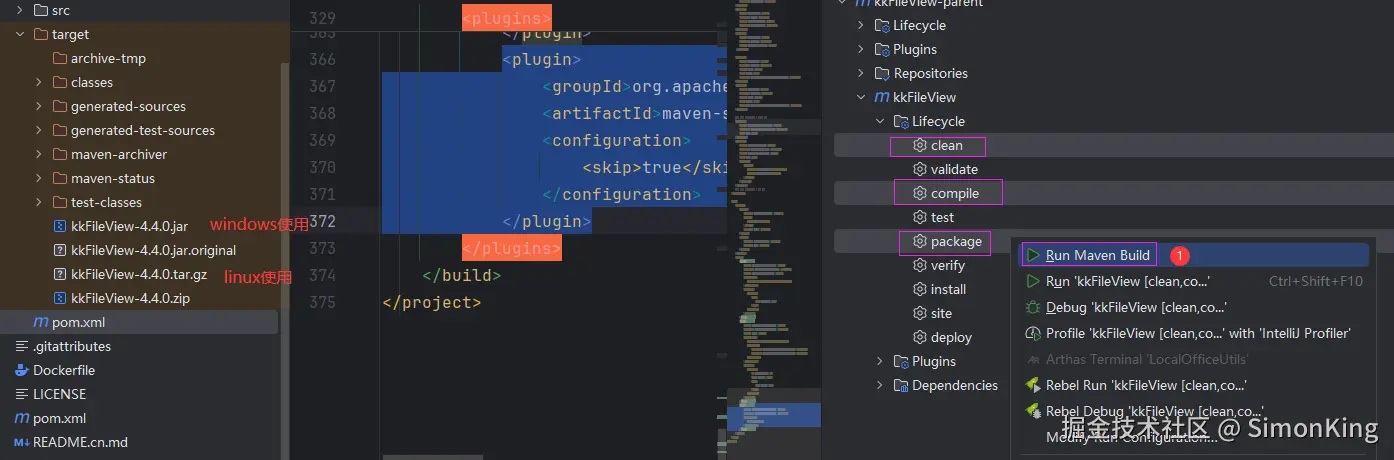按照右侧的标注运行,就会出现左侧的四个包。我们选择kkFileView-4.4.0.tar.gz即可。