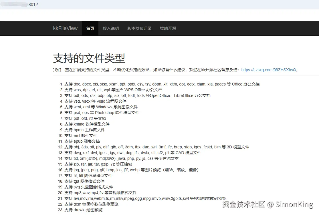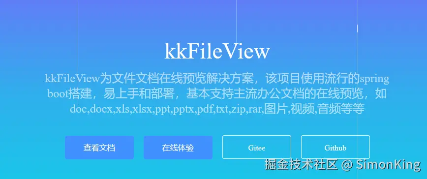 kkFileView是为文件文档在线预览而生,支持广泛的文件格式,如office、压缩包、图片、视频、音频等。采用的流程的SpringBoot 框架,更容易上手和部署。