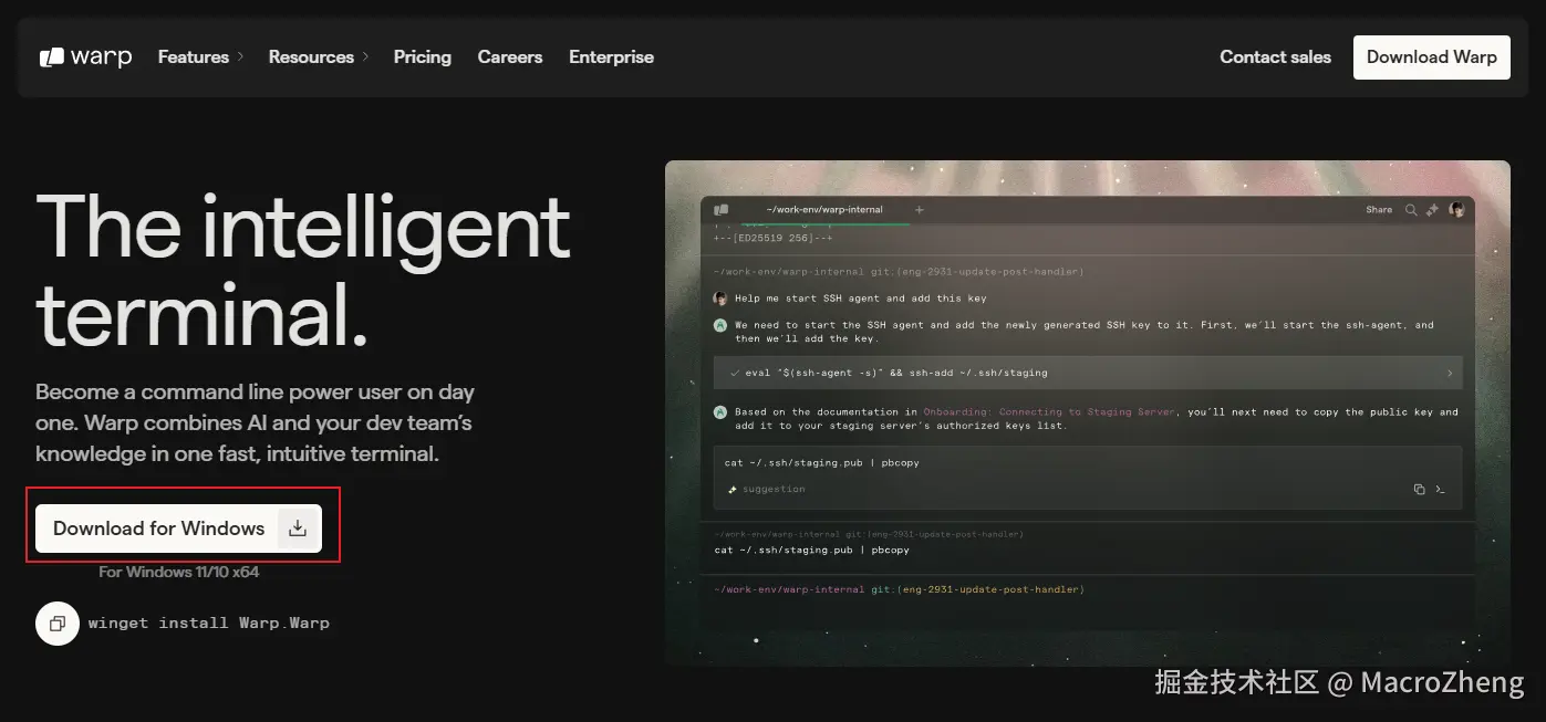 Warp是一款Rust语言编写的现代化终端工具,内置AI功能,目前在Github上已有22k+Star。最初Warp只有MacOS版本,最近逛了下它的官网,发现它已经支持Windows和Linux系统了!