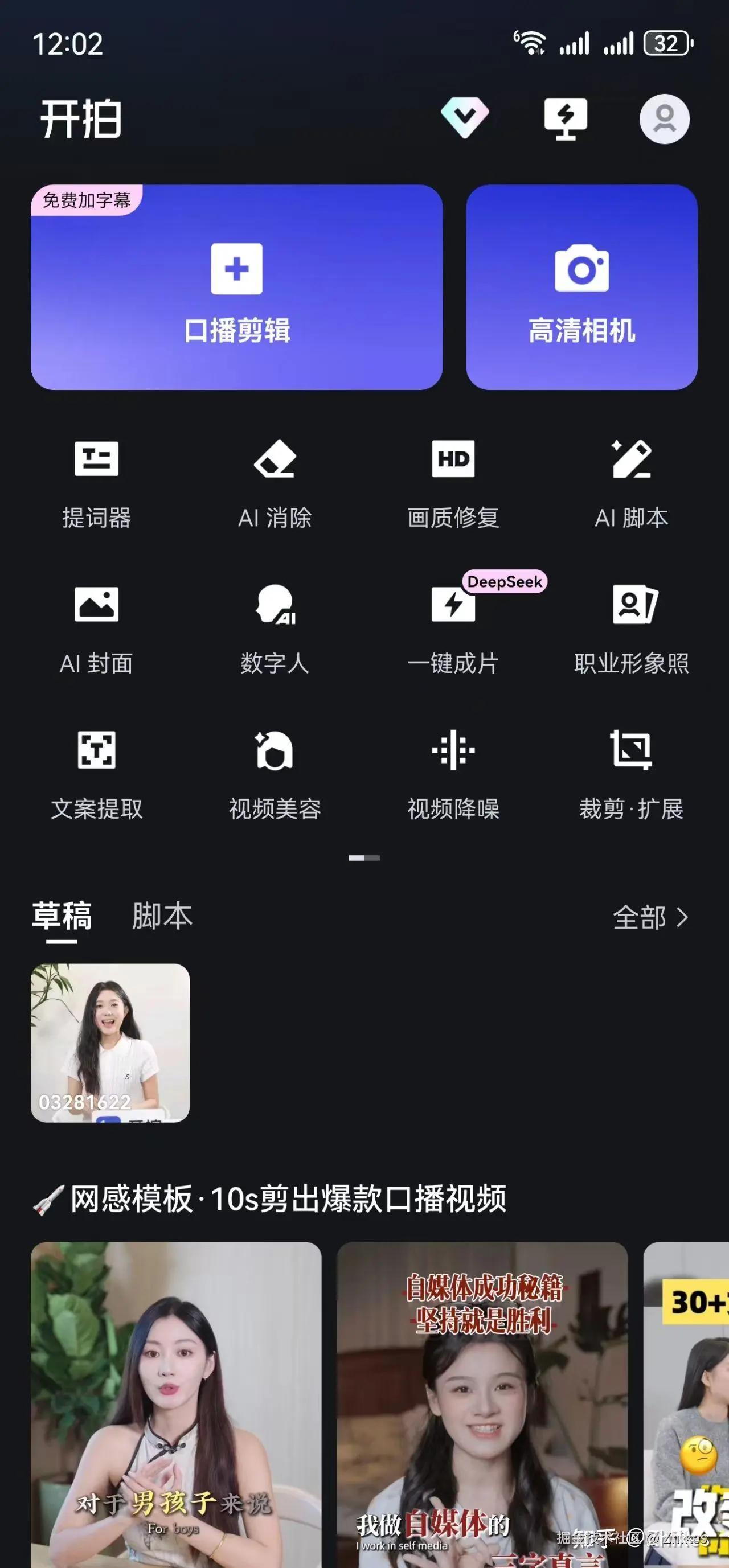 进入软件选择口播剪辑