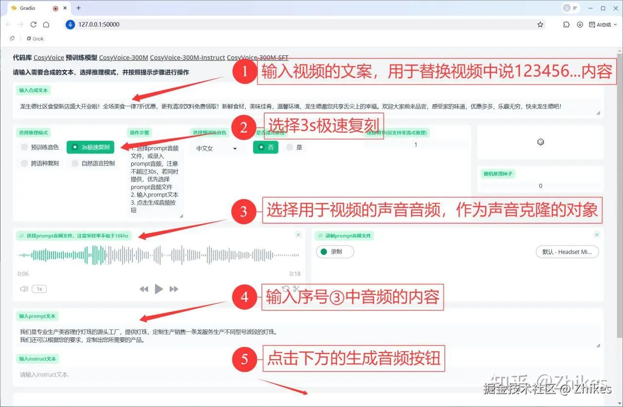 这一步的核心是生成一段与真人音色高度相似的文案音频,为后续的唇形同步打下基础。