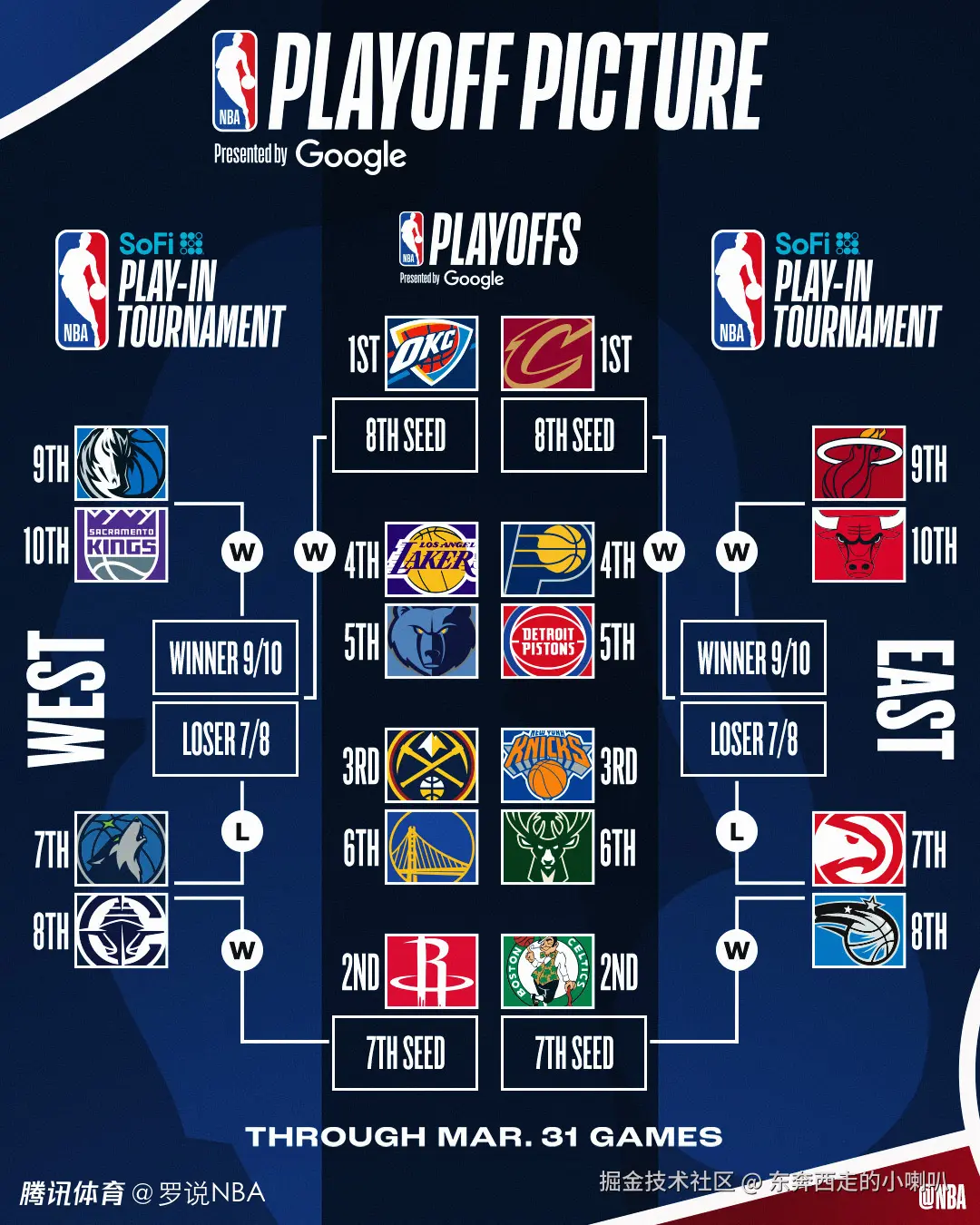 西部附加赛首轮:第7的森林狼对阵第8的快船,第9的独行侠对阵第10的国王