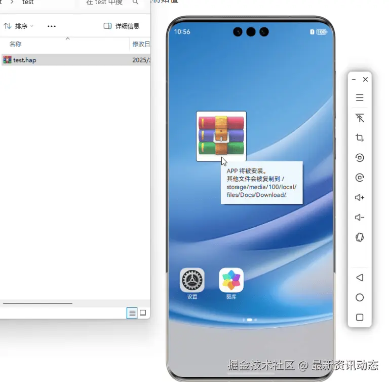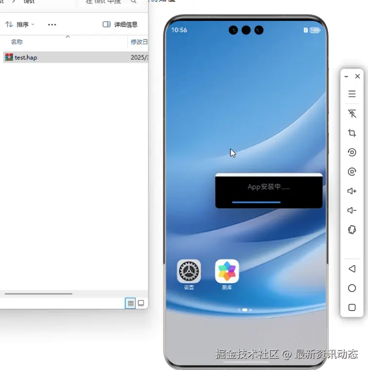 在安装应用时,模拟器也提供了更为直观的方式——只需将HAP文件直接拖拽至模拟器界面,即可完成安装。而使用真机时,开发者需通过执行多条HDC命令进行文件上传、安装与删除,操作复杂且耗时。