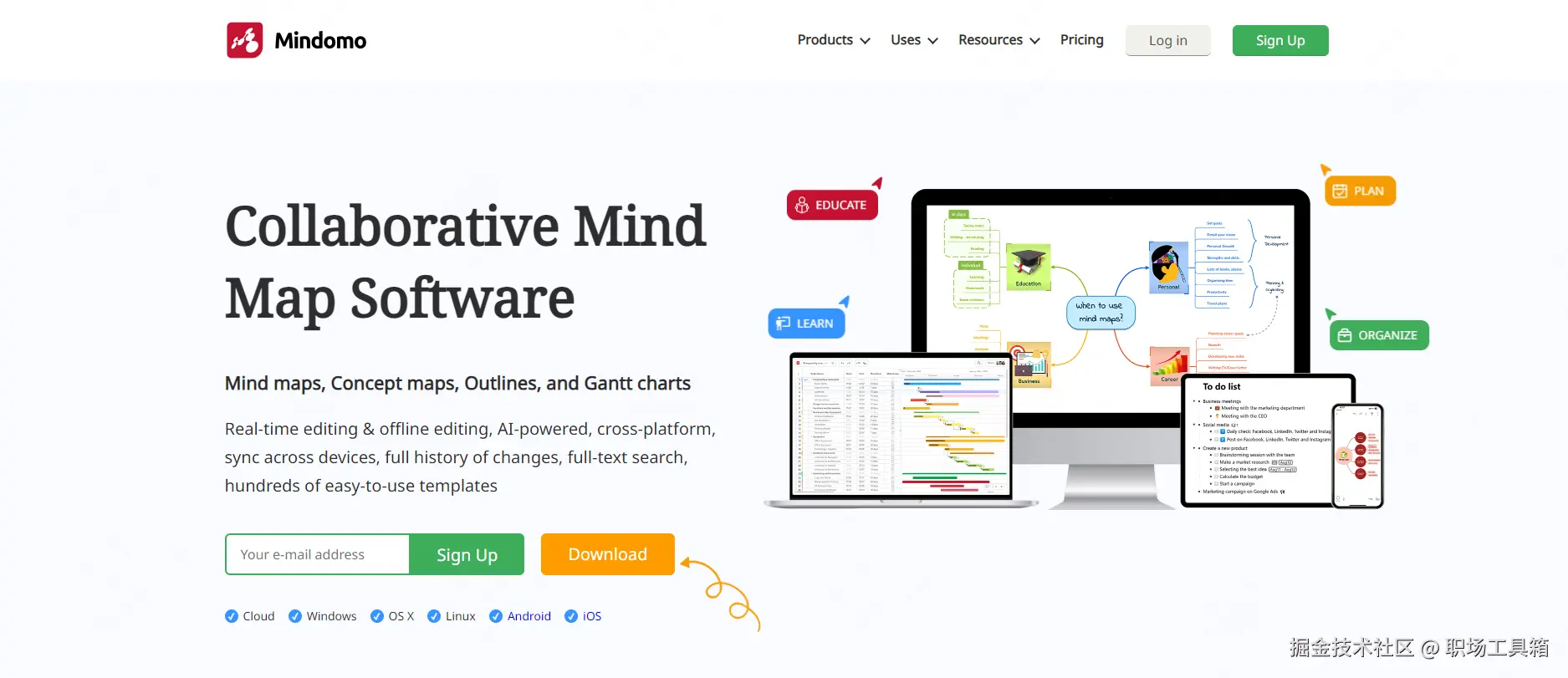 Mindomo是一款思维导图工具,拥有非常友好的用户界面,能让用户尽可能愉快地体验思维导图。Mindomo支持多平台在线使用,你可以随时随地使用移动设备(手机或平板电脑)、个人电脑或笔记本电脑访问,充分利用用户的想法。