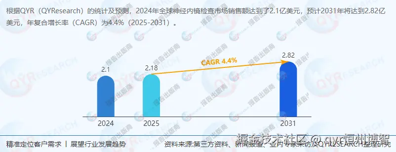 根据QYResearch最新调研报告显示,2024年全球神经内镜检查市场销售额达到了2.1亿美元,预计2031年将达到2.82亿美元,年复合增长率(CAGR)为4.4%(2025-2031)。这表明全球神经内镜检查市场在未来几年将保持稳定增长态势。