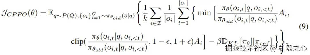 要了解 CPPO,首先必须知道 GRPO,其公式如下: