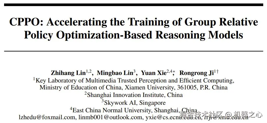 论文标题:CPPO: Accelerating the Training of Group Relative Policy Optimization-Based Reasoning Models