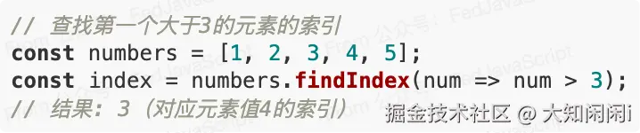 findIndex()方法返回数组中满足提供的测试函数的第一个元素的索引。如果没有满足条件的元素,则返回-1。