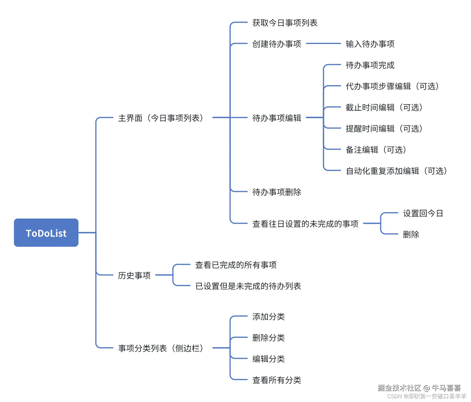 实现一个TodoList前 我们首先观察windows 自带的Microsoft To Do的功能 画出导图